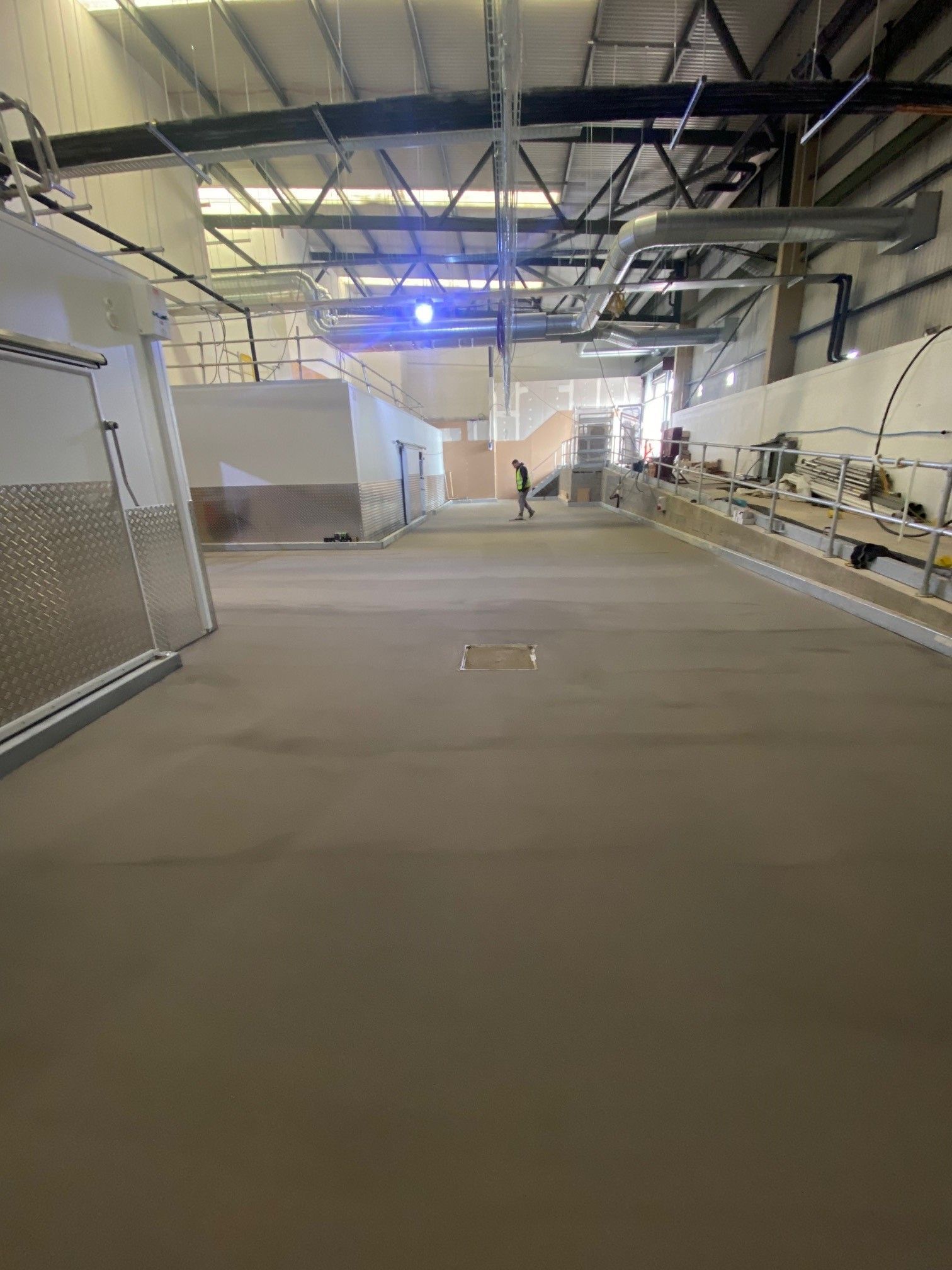 The addition of quartz or aluminium oxide will give the surface greater grip underfoot and also aid forklift trucks in areas where loading / unloading is taking place.